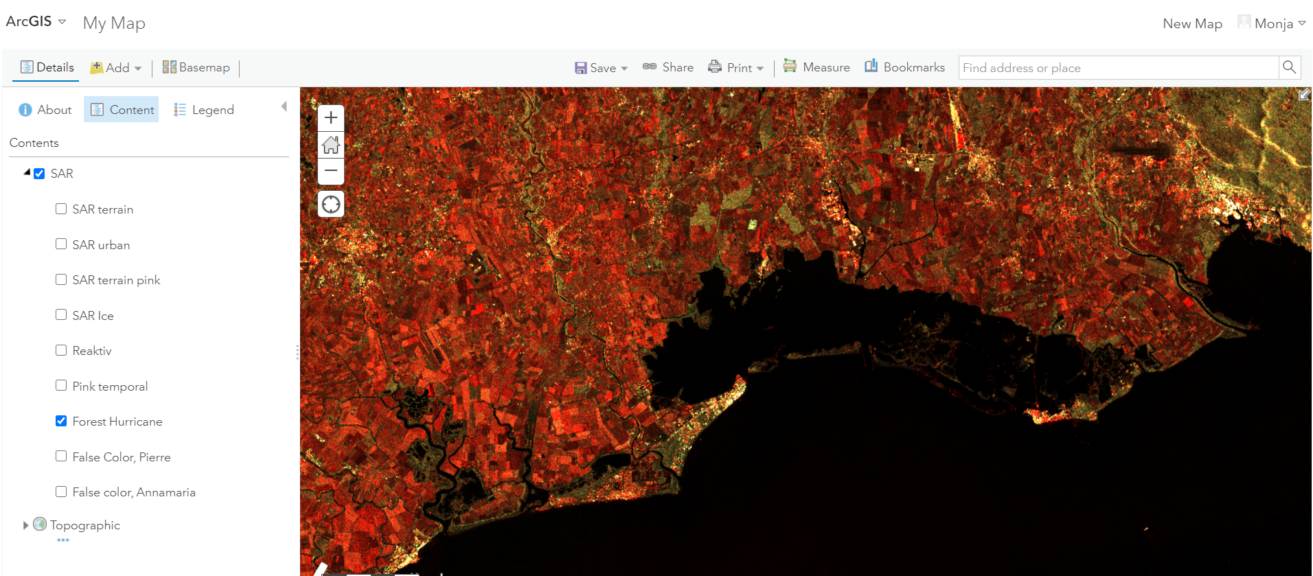 - Select the layer you're interested in and zoom in, to see the imagery. If you're not zoomed in enough, you won't be able to see your layers.