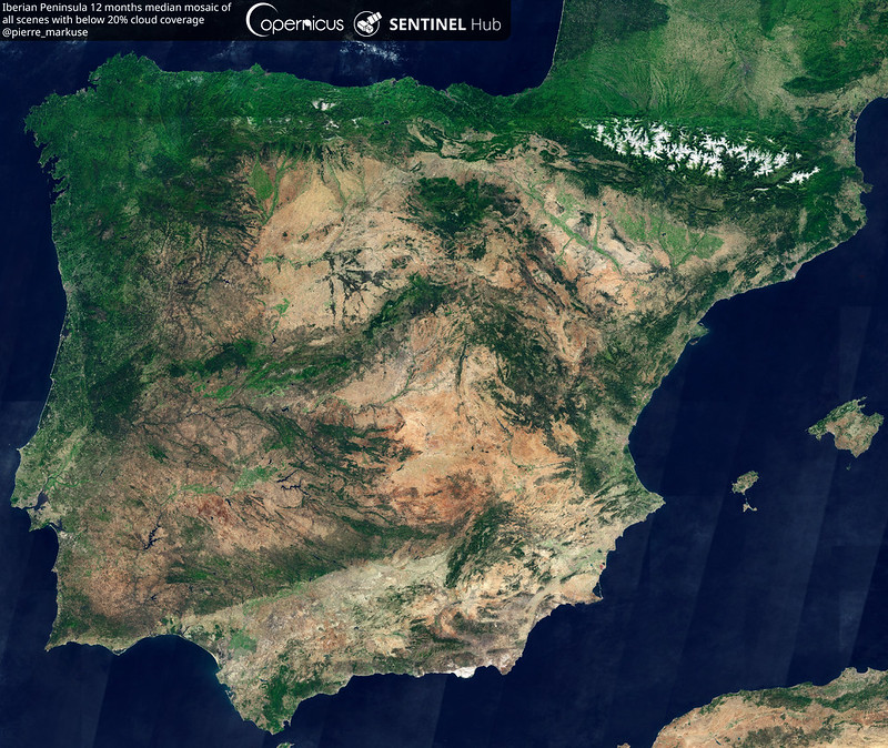 Cloud-free Portugal and Spain mosaic by Pierre Markuse