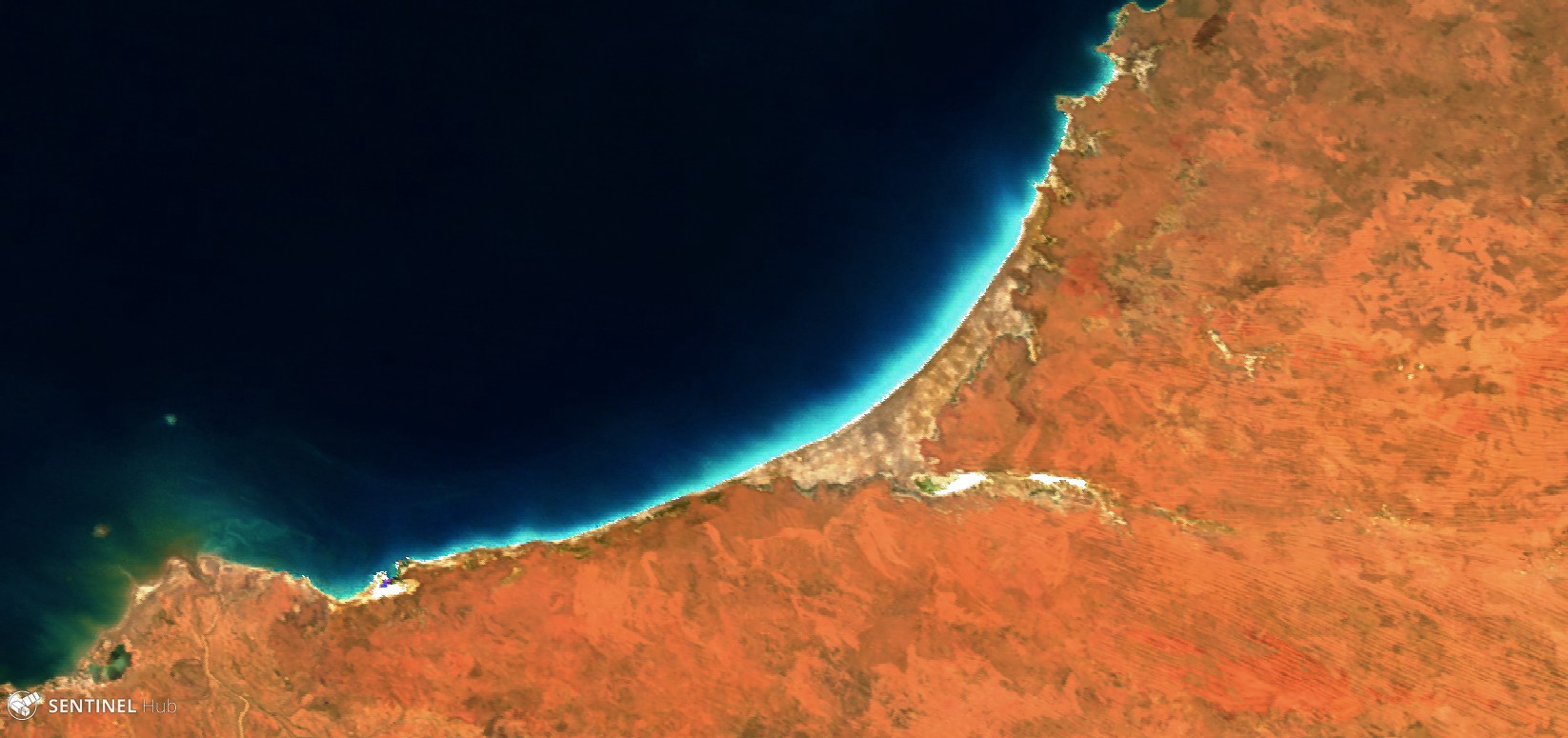 Explore a new data source through the Sentinel Hub services - the Moderate Resolution Imaging Spectroradiometer (MODIS). Many data products derived from MODIS observations describe features of the land, oceans and the atmosphere, and they can be used for studies of processes and trends on local to global scales. Continue reading!Eighty Mile Beach along the north-west coast of Western Australia (acquired between 2017–07–10 and 2017–07–26 by MODIS Aqua and Terra; source data from U.S. Geological Survey)